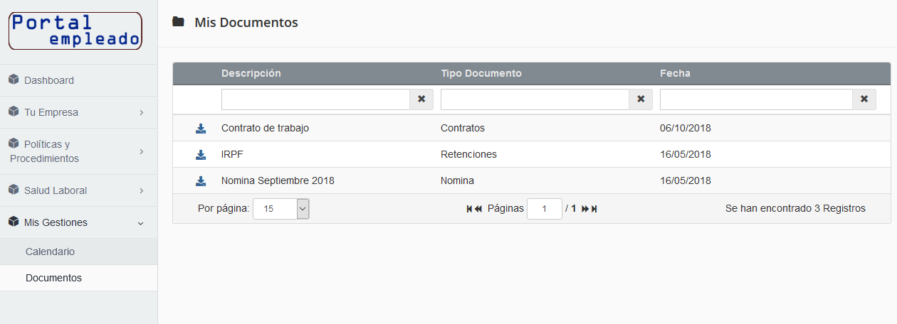 El Empleado cuando accede verá lo que se haya creado especificamente para él.
